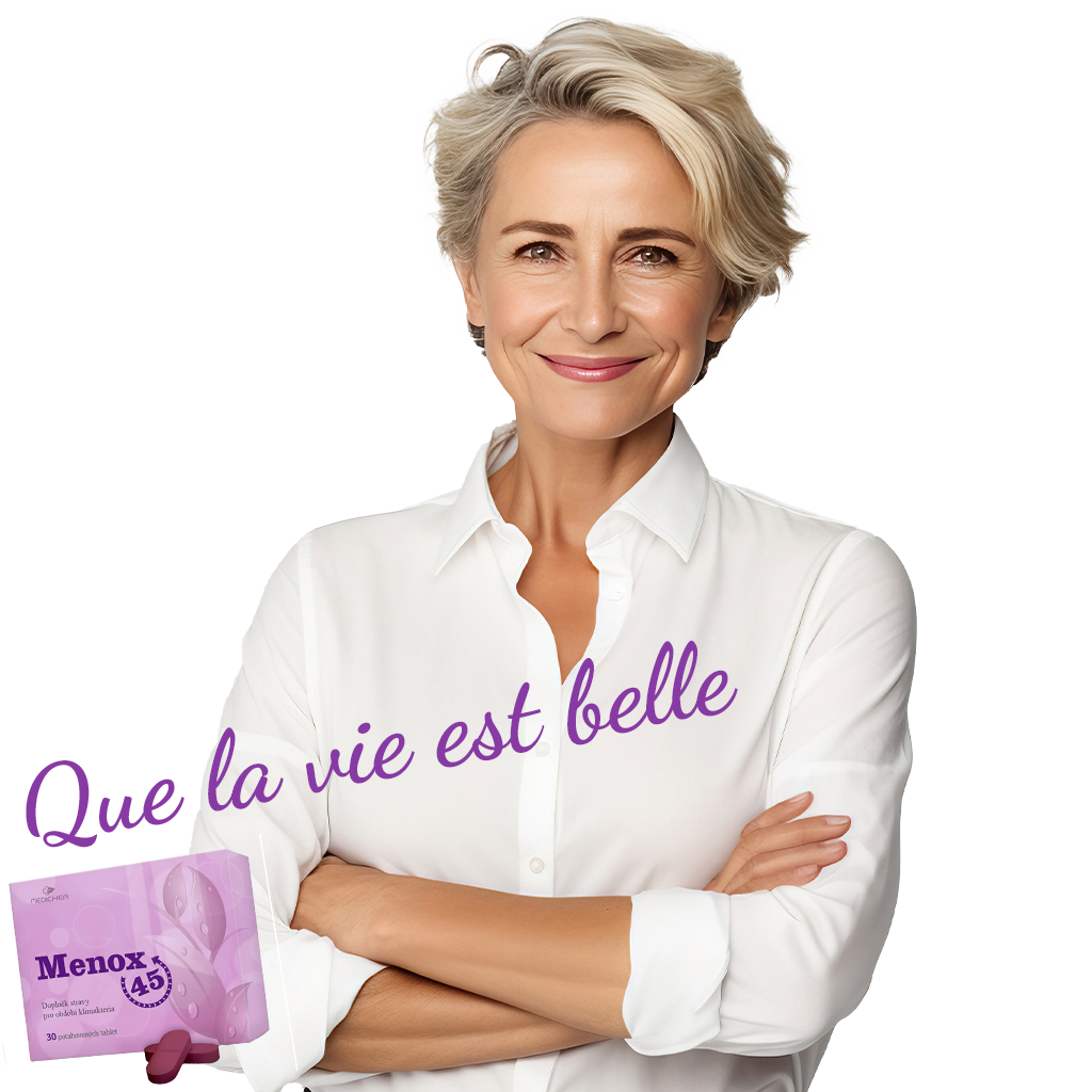 Je m'appelle Zuzana. J'ai 44 ans et j'ai récemment eu un cycle menstruel irrégulier. Cependant, mon collègue m'a dit que c'était normal pour mon âge, ce que j'ai compris. Je n'aimais pas les bouffées de chaleur occasionnelles. Des moments atroces et souvent là où c'était le moins pratique. J'ai entendu parler de Menox 45 sur un forum de discussion sur Internet. Dès le premier mois d’utilisation, j’ai commencé à me sentir mieux et les bouffées de chaleur ont progressivement disparu.